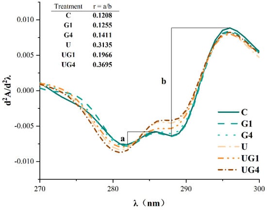 2.9. UV Second Derivative Absorption Spectra
