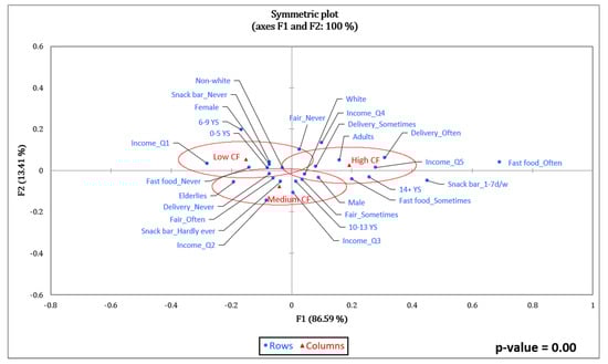 - Greenacre, M.J. Correspondence Analysis. Wiley Interdiscip Rev. Comput Stat. 2010, 2, 613–619. [Google Scholar] [CrossRef]
