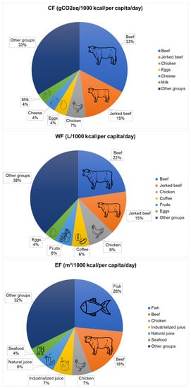 - Garzillo, J.M.F.; Machado, P.P.; Louzada, M.L.d.C.; Levy, R.B.; Monteiro, C.A. Pegadas Dos Alimentos e Das Preparações Culinárias Consumidos No Brasil; Universidade de São Paulo, Faculdade de Saúde Pública: São Paulo, Brazil, 2019; ISBN 9788588848368. [Google Scholar]