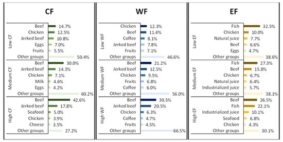 3.3. Association among Environmental Footprints, Socioeconomic Characteristics, and Food Purchase Practices