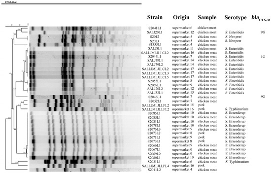 - Zhou, M.; Li, X.; Hou, W.; Wang, H.; Paoli, G.C.; Shi, X. Incidence and Characterization of Salmonella Isolates From Raw Meat Products Sold at Small Markets in Hubei Province, China. Front. Microbiol. 2019, 10, 2265. [Google Scholar] [CrossRef]