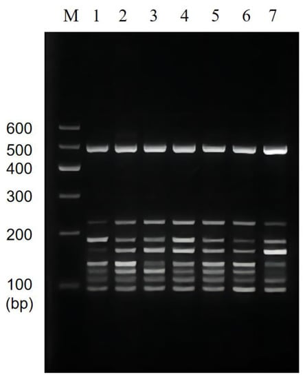 3.4. Results of Multiplex PCR Specificity and Stability