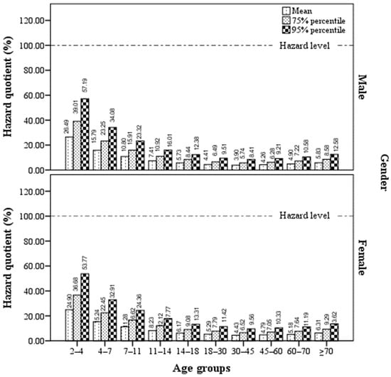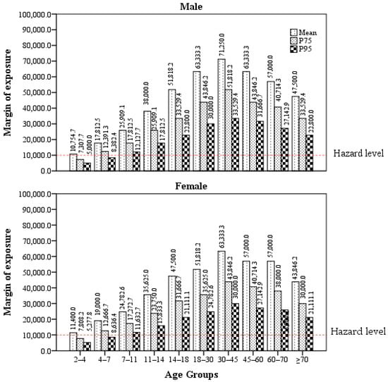 3.2. Risk Assessment of Exposure in Different Age-Sex Groups