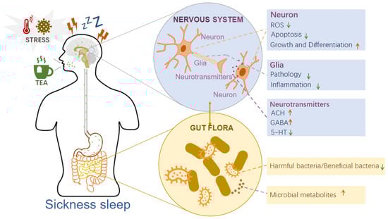 4.1. Tea Acts on the Brain–Gut Axis to Regulate Sickness Sleep