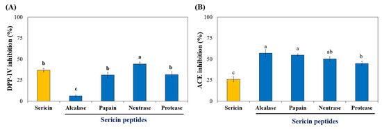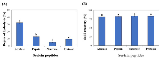 3.2. Effect of Enzymatic Hydrolysis on the Production and Bioactivity of Sericin Peptides