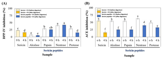 Sangsawad, P.; Katemala, S.; Pao, D.; Suwanangul, S.; Jeencham, R.; Sutheerawattananonda, M. Integrated Evaluation of Dual-Functional DPP-IV and ACE Inhibitory Effects of Peptides Derived from Sericin Hydrolysis and Their Stabilities during In Vitro-Simulated Gastrointestinal and Plasmin Digestions. Foods 2022, 11, 3931. https://doi.org/10.3390/foods11233931