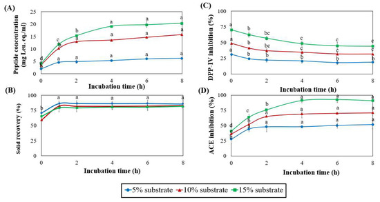2.4. Peptide Content and Degree of Hydrolysis (DH)