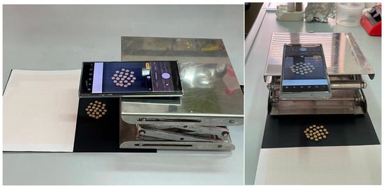 The images were acquired from a camera of a smartphone positioned on a height-adjustable holding structure (camera support) on different days. The camera support was moved between acquisition campaigns, and we found that its repositioning contained a non-negligible error for the purposes of the evaluation process here described. This means that the images in some cases showed a different scaling factor that was handled by the algorithms. In Figure 1, the acquisition setup is shown. The dataset is publicly available at https://github.com/beppe2hd/unconstrainedLentils (accessed on 10 November 2022).