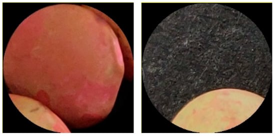 Using the algorithm described in the previous sections, 1549 circles were detected in the 64 images of the provided dataset. After the radius check, 1136 patches were retained, and finally, after the radiometric check, 940 were definitively retained for further processing. The seeds pictured in the 64 images totaled 1270. This means that circle detection correctly retrieved more than 74% (940 × 100/1270) of seeds that were the input of the following processing steps. No false circles were detected. The missed circles were mainly due to defocusing and occluded edges (seeds too close to each other). The circle detection algorithm had thresholds concerning the minimum number of edge pixels to detect a circle. This parameter was set to avoid false circles (highly likely in a cluttered scene such as the processed one, but, on the other side, this choice led to some missing detection that could be better tolerated considering the multiple seeds for each species). Figure 6 reports two examples of discarded circles.