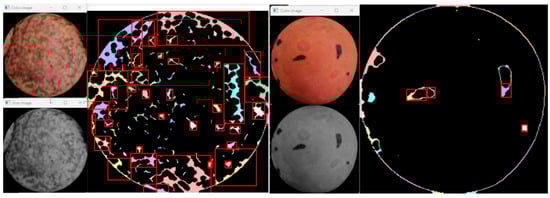 In Figure 9, some examples of correct lentil pattern classifications are reported, whereas Figure 10 reports two examples highlighting the algorithmic details of a sparse texture, finally classified as complex, and a rare texture, finally classified as spotted.
