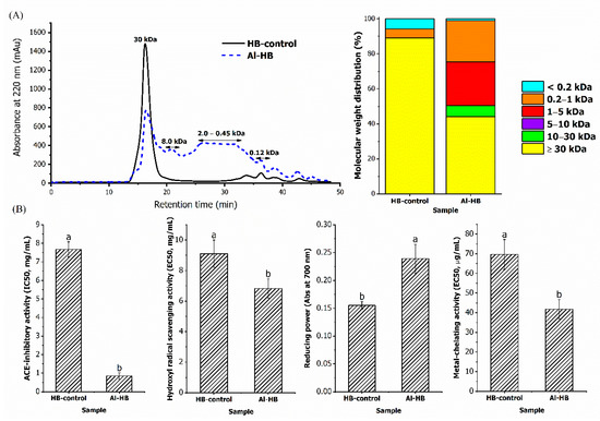 3.1. ACE-Inhibitory and Antioxidant Activities of Alcalase Hydrolysate