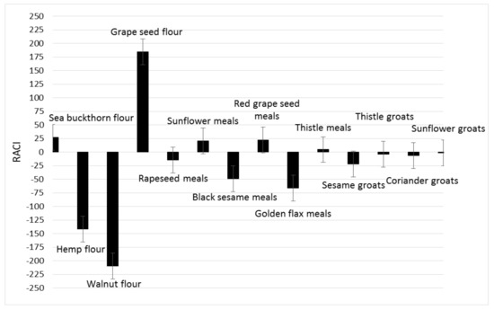 | Sesame groats | −60.11 | −13.85 | −5.65 | −9.78 | −22.35 |
