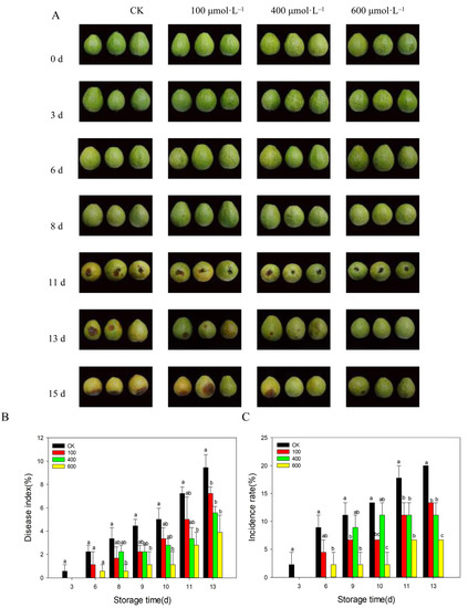 The incidence of disease was calculated as the ratio of the number of diseased fruit to the total number of fruit [4].