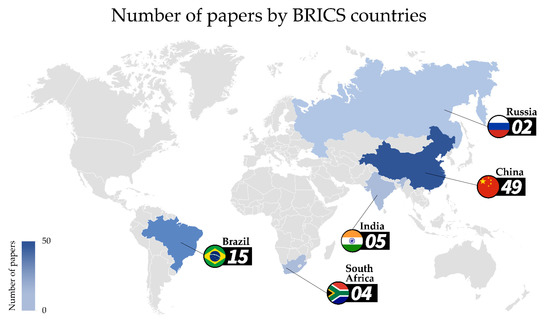 One of the objectives of this study was to compare the results observed in different BRICS countries, seeking to elucidate convergences and divergences. However, we observed that scientific production in consumer science differs substantially between countries. Despite having the largest population on the planet, China also has solid scientific production. According to SCImago, China was the country with the second highest number of citable documents (CD) (CD = 7,229,532) between 1996 and 2020, only behind the United States [114]. Despite the low number of articles included on the topic of interest in this study, India ranks seventh in terms of citable documents (CD = 1,946,730) [114]. Russia, Brazil, and South Africa are, respectively, 12th (CD = 1,302,809), 14th (CD = 1,067,185), and 35th (CD = 305,649) [114]. When the comparison in SCImago was performed using the “Food Science” category filter, the results differed, showing the potential of China and Brazil, with China 2nd (CD: 70,797), Brazil 5th (CD: 25,947), India 7th (CD: 23,731), South Africa 35th (CD: 4.081), and Russia 43rd (2.463) [114].
