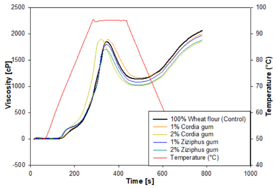 - Hammed, A.M.; Ozsisli, B.; Simsek, S. Utilization of microvisco-amylograph to study flour, dough, and bread qualities of hydrocolloid/flour blends. Int. J. Food Prop. 2016, 19, 591–604. [Google Scholar] [CrossRef]