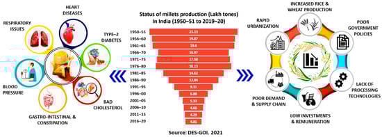 - Ashoka, P.; Gangaiah, B.; Sunitha, N. Millets-foods of twenty first century. Int. J. Curr. Microbiol. Appl. Sci. 2020, 9, 2404–2410. [Google Scholar] [CrossRef]