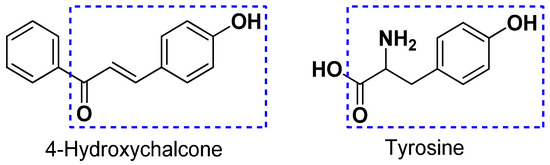 The structural similarity between 4-hydroxychalcone and tyrosine.