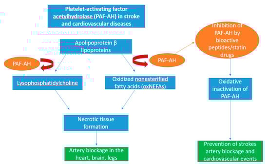 - Stafforini, D.M.; McIntyre, T.M.; Carter, M.E.; Prescott, S.M. Human plasma platelet-activating factor acetylhydrolase. Association with lipoprotein particles and role in the degradation of platelet-activating factor. J. Biol. Chem. 1987, 262, 4215–4222. [Google Scholar] [CrossRef]