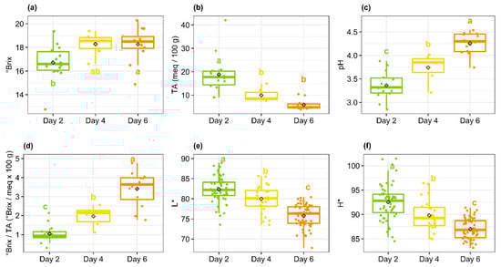- Noiwan, D.; Suppakul, P.; Joomwong, A.; Uthaibutra, J.; Rachtanapun, P. Kinetics of Mango Fruits (Mangifera indica cv. ‘Nam Dok Mai Si Thong’) Quality Changes during Storage at Various Temperatures. JAS 2017, 9, 199. [Google Scholar] [CrossRef][Green Version]