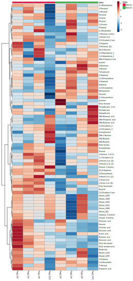 Hierarchically clustered heatmap plot of VOCs during storage time per sample.