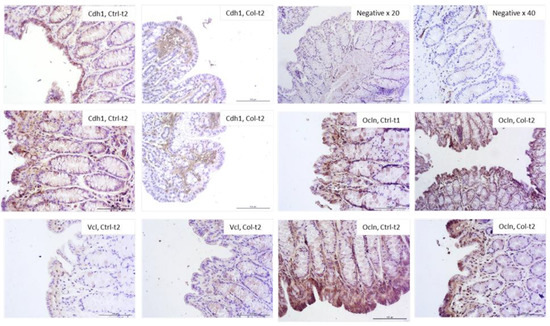 Representative pictures of the protein expression of intercellular junctions in the small intestine derived from control or Col-supplemented animals. We have only selected those where the differences were most apparent (objective magn. ×20, Leica DM5000B, Wetzlar, Germany).