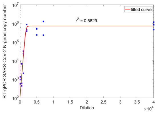 Test results here reported show that the humic substances compounded with Zn2+-Se−-ascorbic acid (ZnSeC-Humicin) seem to exert a significant inhibitory effect on SARS-COV-2 virus replication (Figure 2). A sigmoidal curve (red continuous line) could be fitted to the triplicate copy number data points (blue squares) for determination of the mean inhibitory dose (ID50) value of the tested HS material. Figure 2 shows a semi-logarithmic scale transformation of the sigmoidal function. It was found that the Dilution50 value is 1740-fold of the applied ZnSeC-Humicin stock.