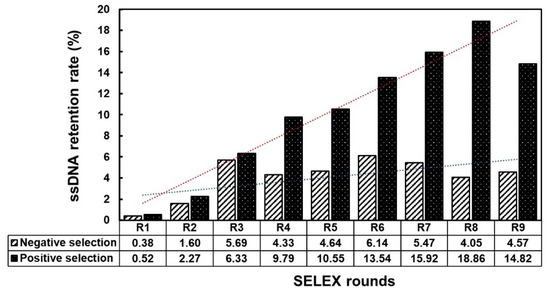 2.2. Capture-SELEX Selection for MG ssDNA Aptamer
