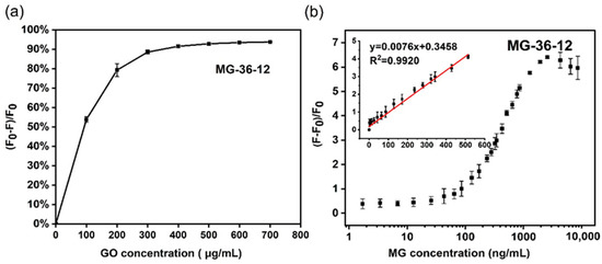 3.4.1. Development of the GO-Based Fluorescent Aptasensor for Detection of MG