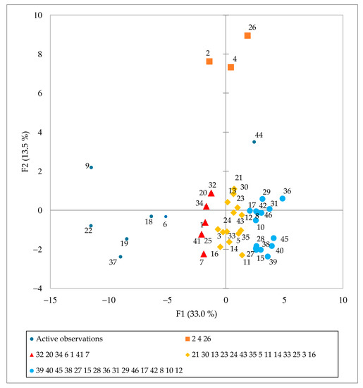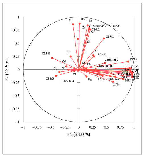 Statistical analysis was performed using XLSTAT software (Addinsoft, Long Island, NY, USA, 2019). First, basic statistical methods were used for data analysis (median and quartiles, minimum, maximum, average). Principal component analysis (PCA) was applied further to identify characteristic parameters to discriminate samples based on their macro and trace-elemental composition, amino acid and fatty acid composition. The results are presented as biplots, simultaneous variables and as PCA plots.