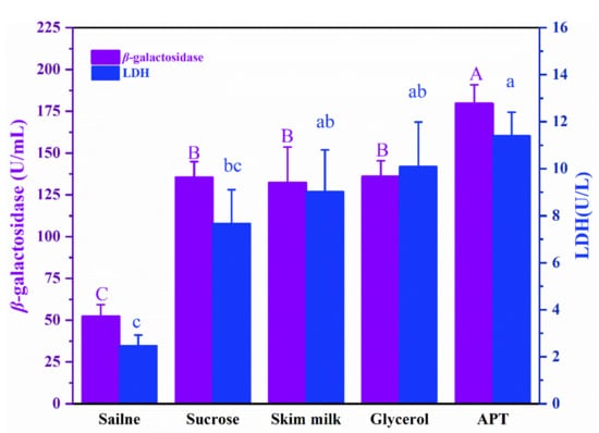 2.8. Determination of β-GAL and LDH Activities