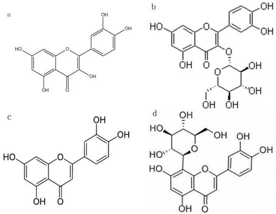 Isoquercitrin is quercetin-3-O-glucoside, and orientin is luteolin-8-C-glucoside. They share a similar skeleton, while the remarkable difference lies in the glycosidic bond; isoquercitrin possesses a C–O bond, and orientin possesses a C–C bond. They were chosen to compare the differences between O-glycoside and C-glycoside. Glycosides are formed by aglycones and sugar moiety. Due to the modification of sugar moiety, isoquercitrin and orientin show different physical and chemical properties from their aglycones quercetin and luteolin. So, they were chosen to compare the differences between glycosides and aglycones.