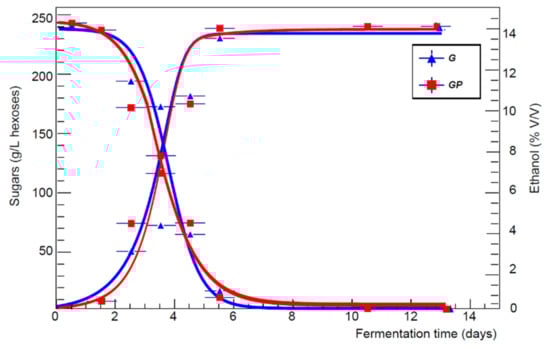 Values of starting sugars, residual sugars, the duration of fermentation (days), the final ethanol produced, and the % of hexoses converted into ethanol. C = Castellina, G = Gaiole, T = Tavarnelle, CP = Castellina plantarum, GP = Gaiole plantarum, and TP = Tavarnelle plantarum.
