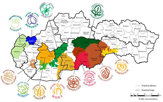 - Jaďuďová, J.; Marková, I.; Hroncová, E.; Hroncová Vicianová, J. An Assessment of Regional Sustainability through Quality Labels for Small Farmers’ Products: A Slovak Case Study. Sustainability 2018, 10, 1273. [Google Scholar] [CrossRef] [Green Version]