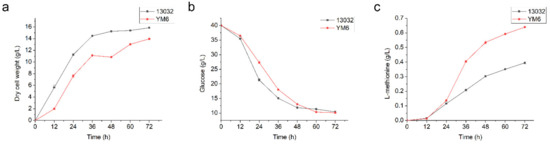 3.3. Construction and Fermentation Characteristics of C. glutamicum YM6