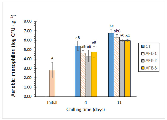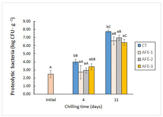 | Psychrotrophs | CT | 2.99 A (0.53) | 3.89 aB (0.15) | 7.65 bC (0.28) |