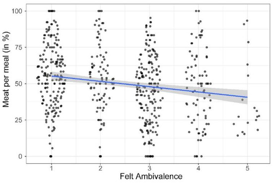 Scatterplot of the association of felt ambivalence with meat consumption.