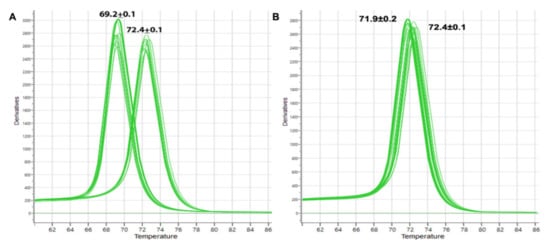 3.3. Melting Curve Analysis by Real-Time PCR