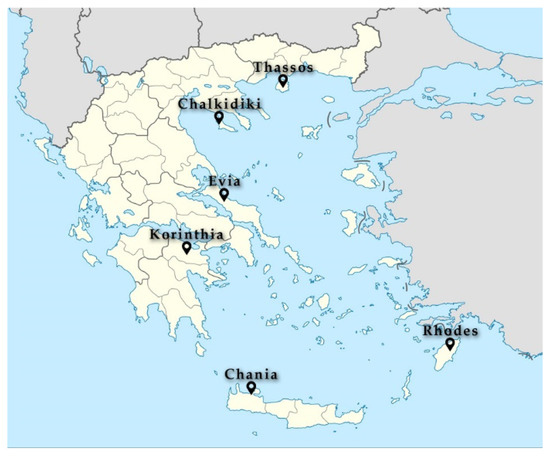 Figure 1. Locations of collected pine honey samples across Greece.