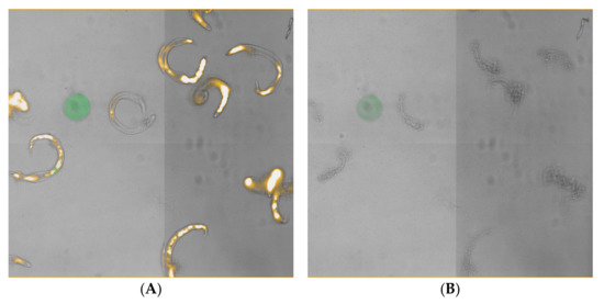 - Ferreira, S.R.; Mendes, T.A.O.; Bueno, L.L.; de Araújo, J.V.; Bartholomeu, D.C.; Fujiwara, R.T. A New Methodology for Evaluation of Nematode Viability. BioMed Res. Int. 2015, 2015, 879263. [Google Scholar] [CrossRef] [PubMed] [Green Version]