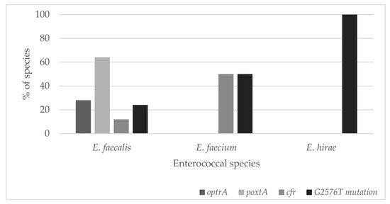 Due to the different number of analyzed strains belonging to individual species, no reliable statistical analysis could be performed indicating differences in the frequency of linezolid resistance among various Enterococcus species.