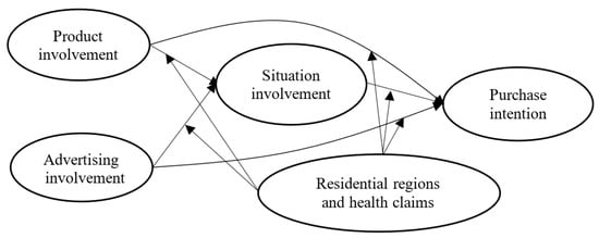 Involvement theory holds that individuals direct their attention to stimuli or circumstances with which they perceive themselves to be related [26]. Involvement, particularly consumer involvement in health, is a construct of human motivation related to personal values and needs [26]. Involvement, particularly consumer involvement in health, is a construction of human motivation related to personal values and needs [26]. A high degree of consumer involvement generates stronger purchase intention; that is, self-involvement in purchasing can predict a consumer’s buying attitudes and behaviours [19]. Involvement can be classified into product, advertising, and situational involvement [21]. Product involvement refers to the extent to which an individual attaches meaning to a product or service [22]. Advertising involvement refers to individuals’ perceived connection to the message of an advertisement and their psychological state when exposed to an advertisement [23,24]. Situational involvement refers to a short-term perceived connection to a product or service based on a consumer’s personal needs [25].