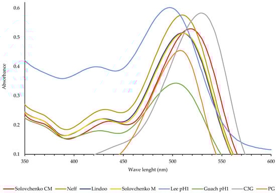 5]. Two main spectroscopic methods are based on organic solvents and pH differential buffers that extract anthocyanins in an acidic environment [