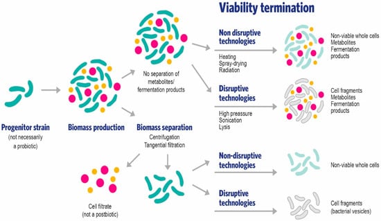 - Aguilar-Toalá, J.E.; Garcia-Varela, R.; Garcia, H.S.; Mata-Haro, V.; González-Córdova, A.F.; Vallejo-Cordoba, B.; Hernández-Mendoza, A. Postbiotics: An evolving term within the functional foods field. Trends Food Sci. Technol. 2018, 75, 105–114. [Google Scholar] [CrossRef]