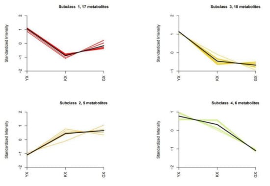 K-means map of four subclasses of differential metabolites.