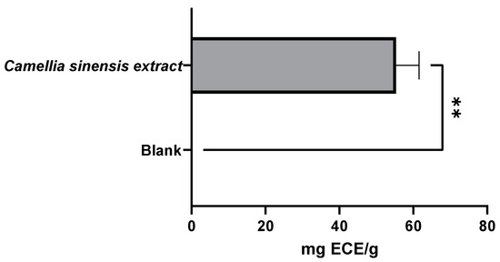 Furthermore, compared with the extract from Castro et al. (2019) [17], our extracts’ values were much higher, as their extract presented an AAC of 379.24 ± 10.43 mg GAE/g of extract and a TFC of 119.81 ± 11.70 mg ECE/g of extract.