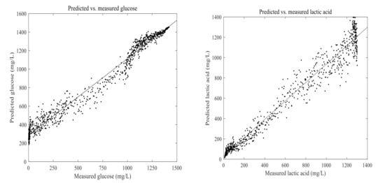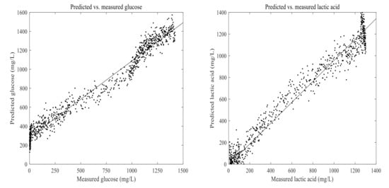 3.4. Prediction of Lactic Acid and Glucose in the Fermentation Process