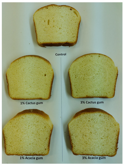 Images of the central slices of the different breads containing acacia and cactus gums.