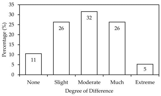 Selection of degree of difference “None”, “Slight”, “Moderate”,” Much”, and “Extreme” from the correct responses.