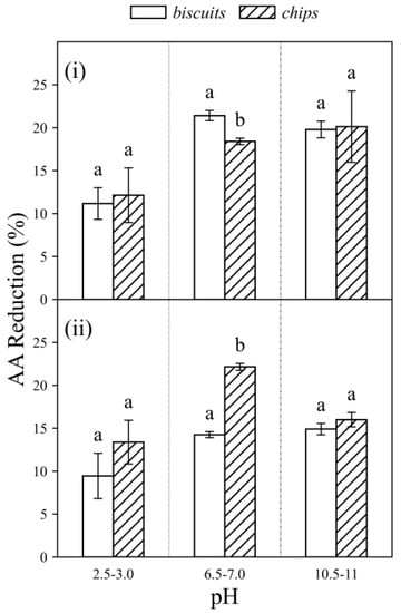 2.6. Acrylamide Reduction Ability in Food Matrices
