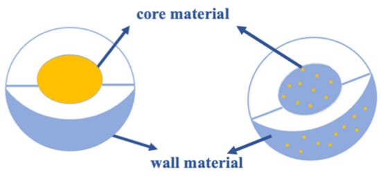 Microencapsulation is a production process of small structures produced by polymeric walls that surround bioactive compounds (Figure 1) [,].